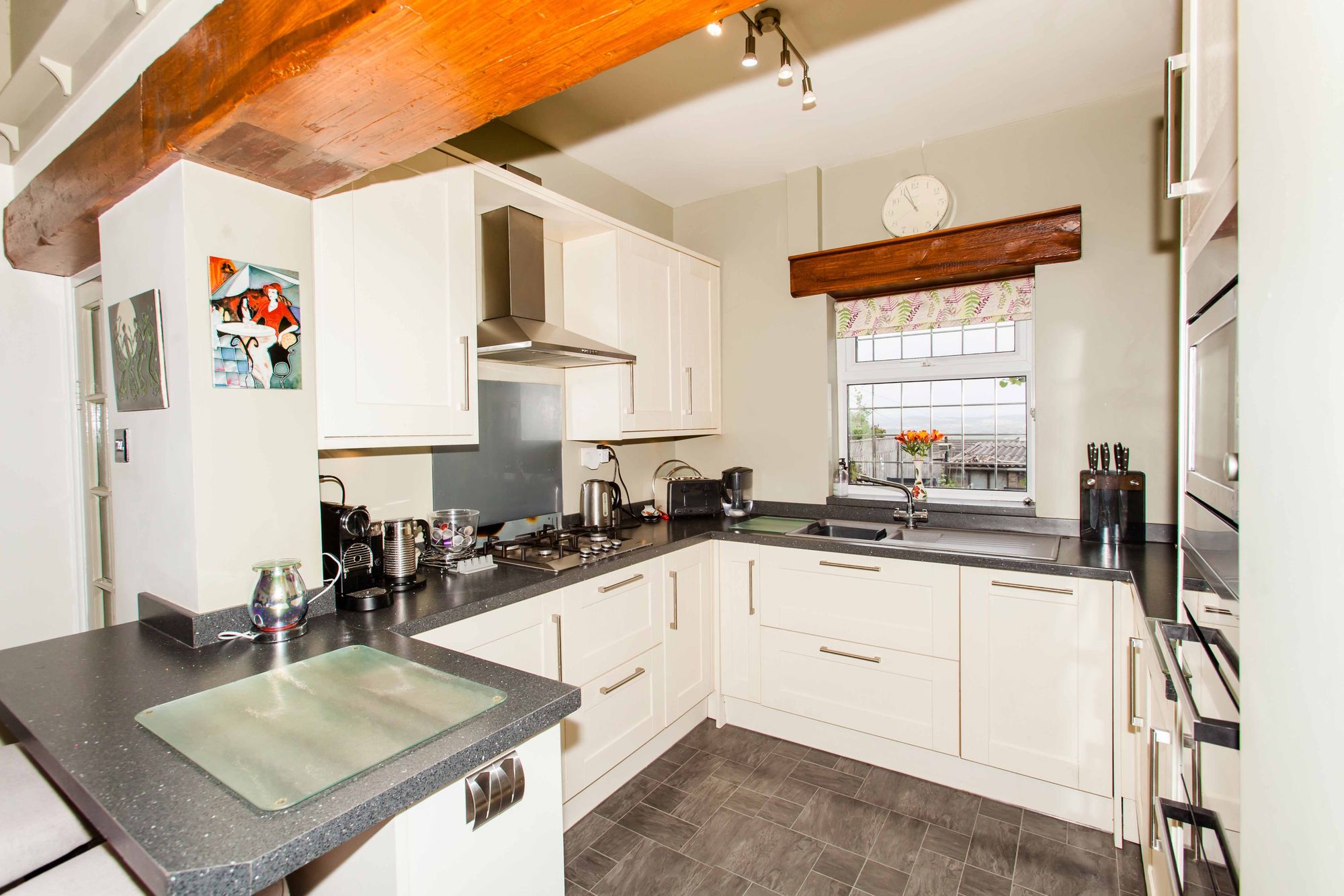 - Spacious Open Plan Family Kitchen Living And Dining Area, Integrated Bosch Appliances, Quartz worktops