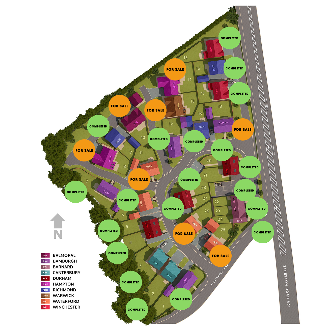 Situated in the sought after village of Stretton this exclusive development of just 28 new homes offers a countryside setting while being conveniently located close to local amenities and exceptionally placed for commuters requiring access to major road networks with the M1, A61 and A38 nearby making easy commuting to nearby Nottingham, Derby, Chesterfield and Sheffield.