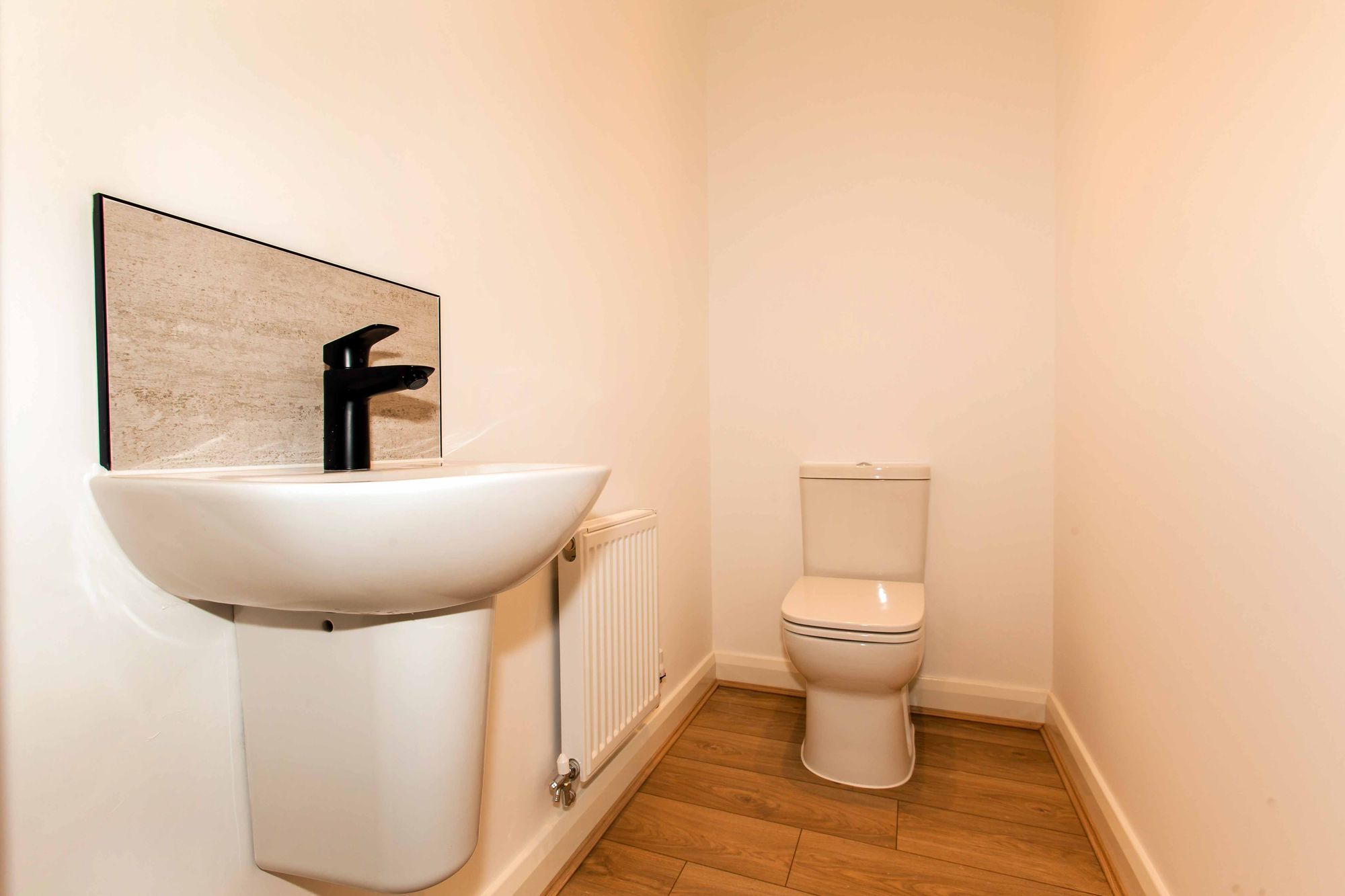 Upstairs you’ll find four bedrooms – including the master with ensuite – and a family bathroom with white Vitra sanitaryware, separate Hansgrohe shower and Porcelanosa tiling.